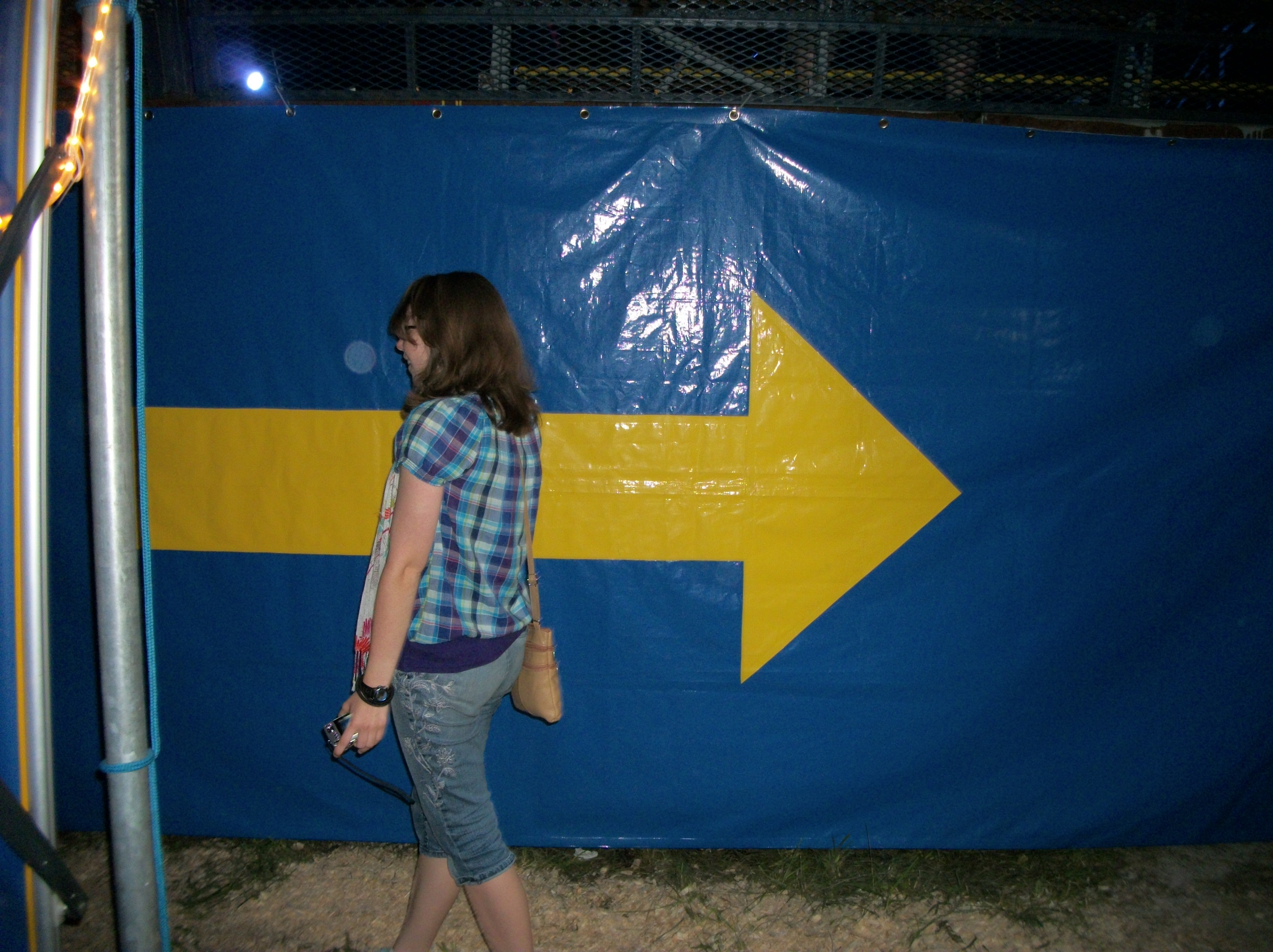 My daughter and I went to the circus awhile back, and as we went into the big tent, there was this arrow pointing right.